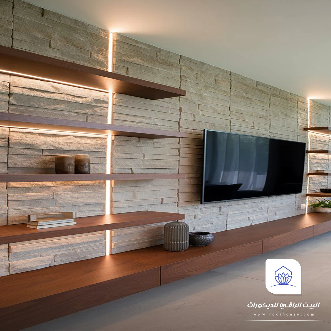 من استخدامات ديكورات بديل الحجر خميس مشيط، اختيارها كـ ديكور تلفزيون بديل الحجر في ابها وذلك لتزيين وإبراز الجدار خلف الشاشة. وكذلك فإنه يتيح لك الاختيار من قائمة مذهلة من الأشكال والألوان الفخمة لديكور تلفزيون مبهر وأيضاً ملفت.