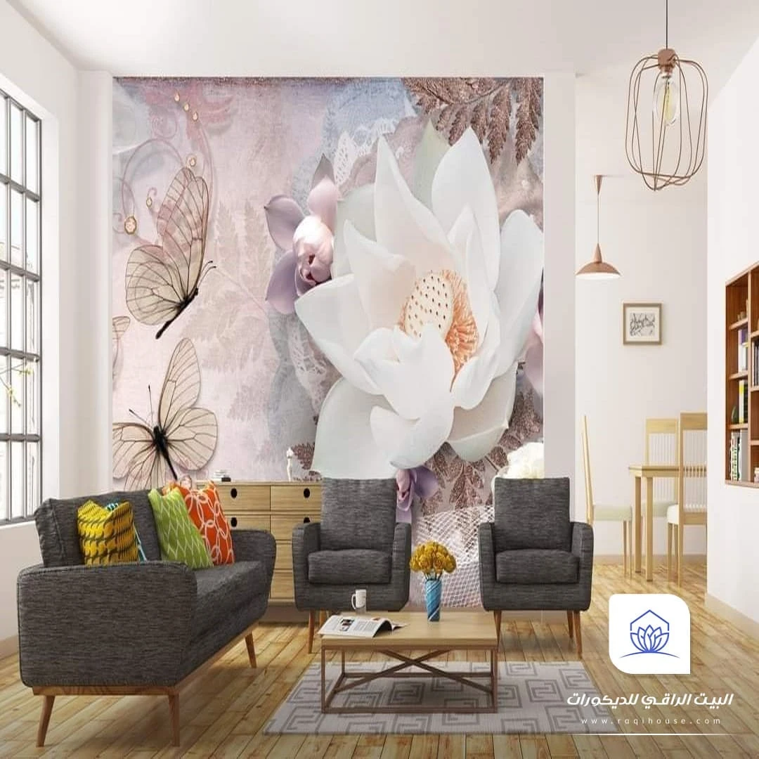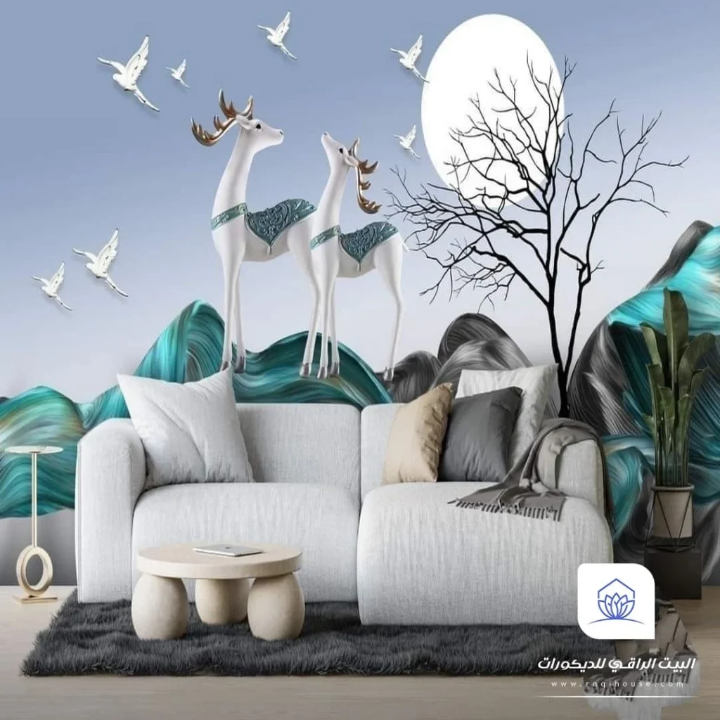 | تصاميم ثلاثية الأبعاد (3D) | تعطي عمق وتأثير بصري مذهل | خلفيات سرير، جدار رئيسي بالصالة |